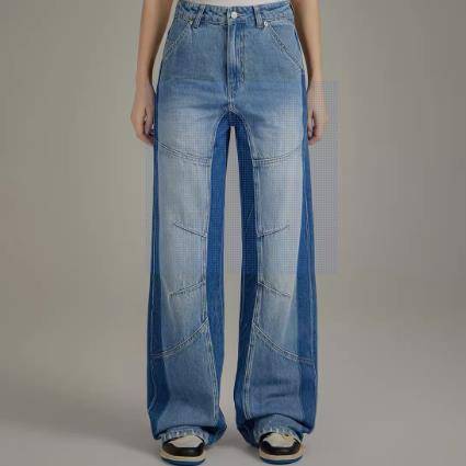 又一间女装店拼接撞色牛仔裤女2023年秋季新品设计感洋气阔腿裤子