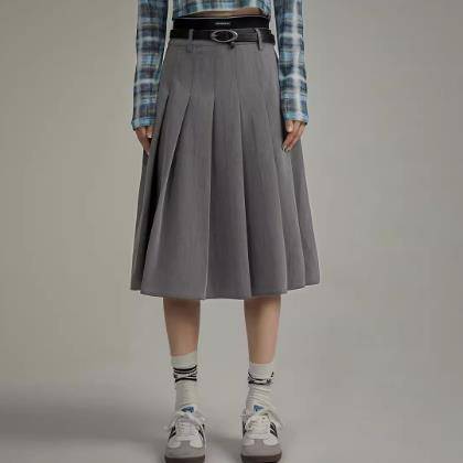 又一间女装店高腰拼接百褶半身裙女2023秋季新款学院风a字中长裙子