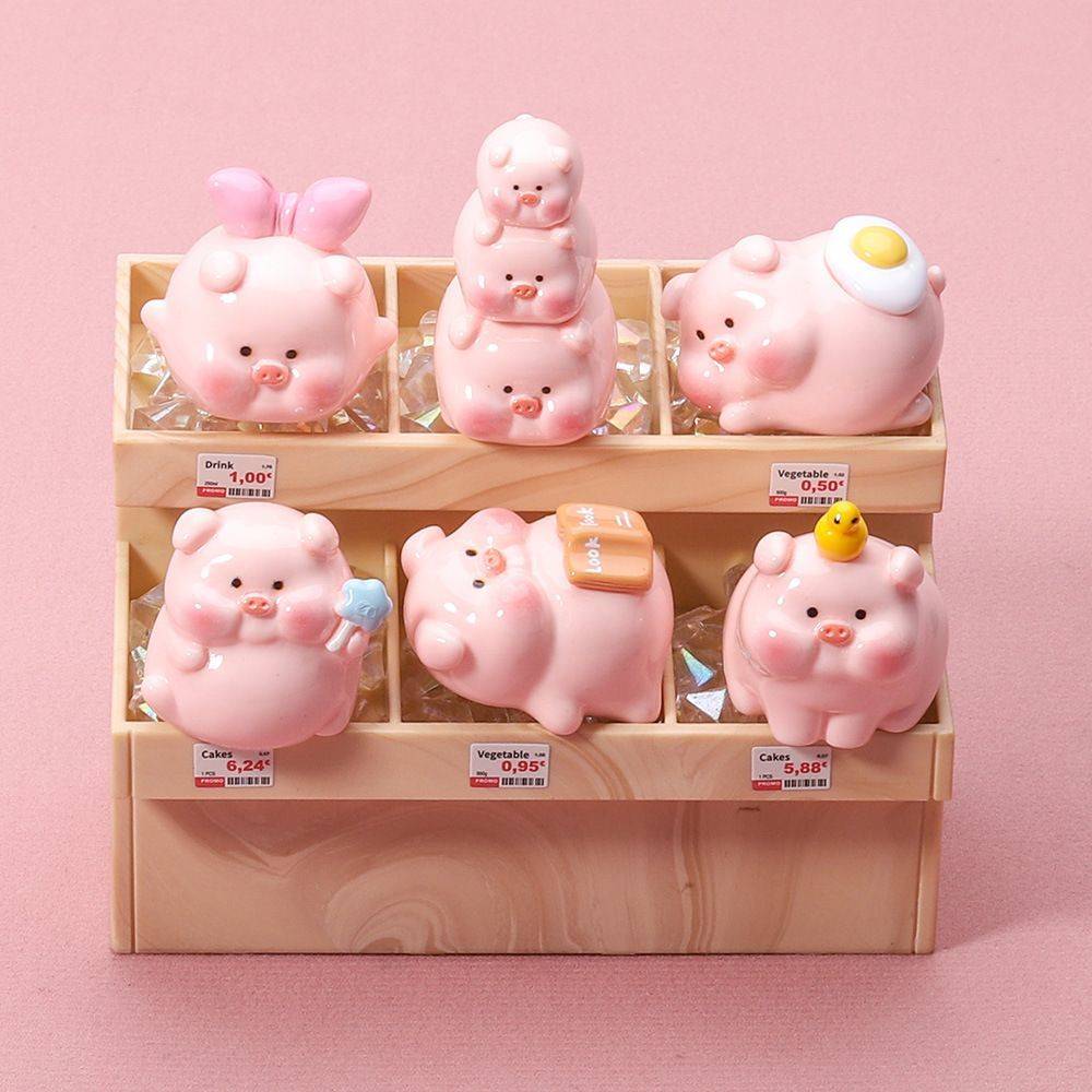 潮玩小公仔玩偶高颜值卡通可爱小粉猪diy立体车载蜜桃粉猪猪摆件收藏