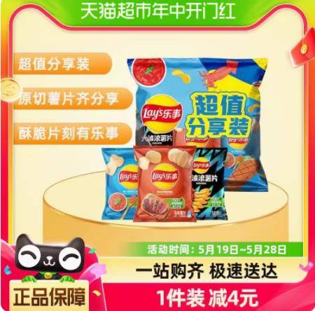 Lay’s/乐事薯片超值分享装组合(红烩/烧烤/鱿鱼)56gx3包零食 9.00 已售:0件