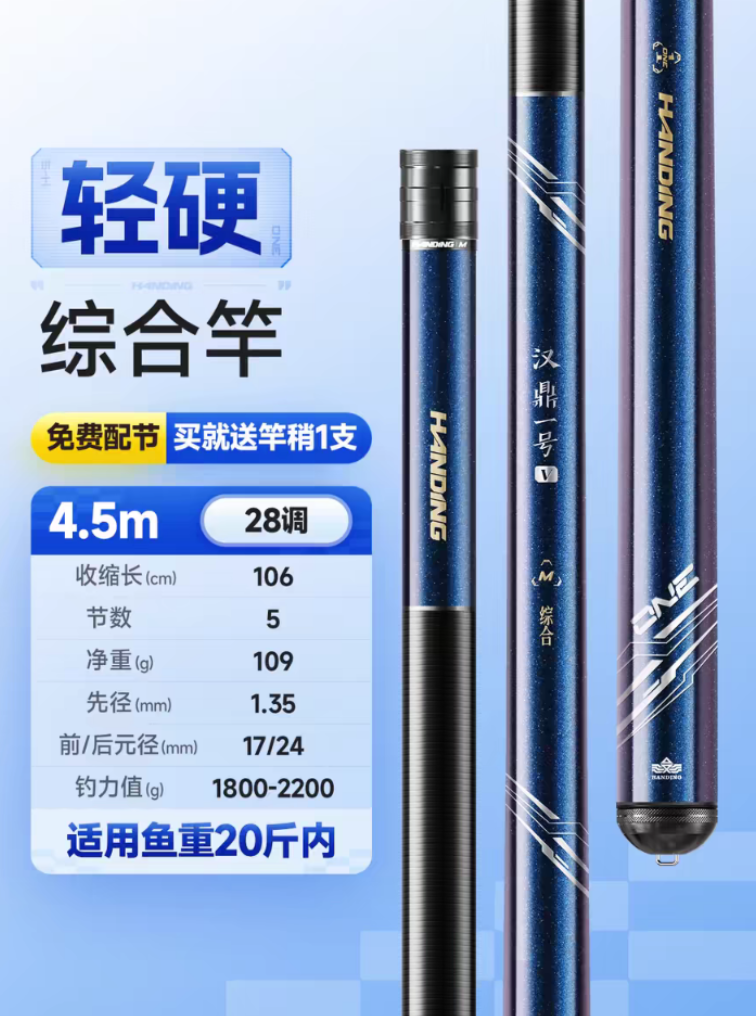 轻硬综合竿,4.5m,有稳定钓力 1010.00 已售:9件