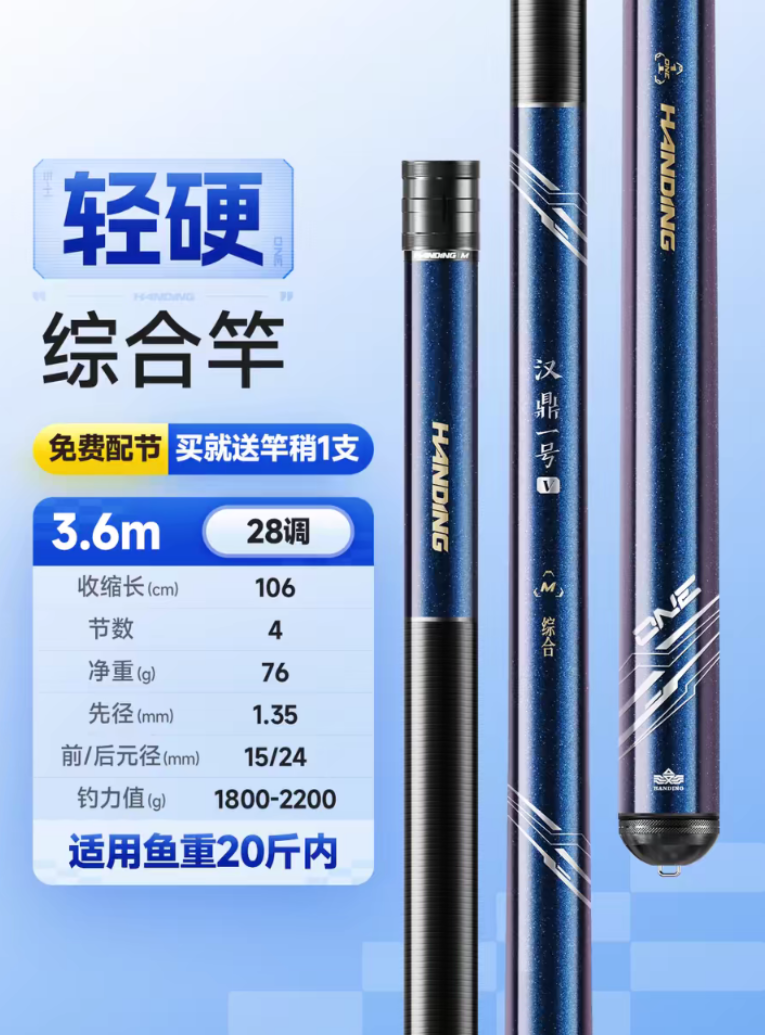 轻硬综合竿,3.6m,净重轻 1000.00 已售:2件