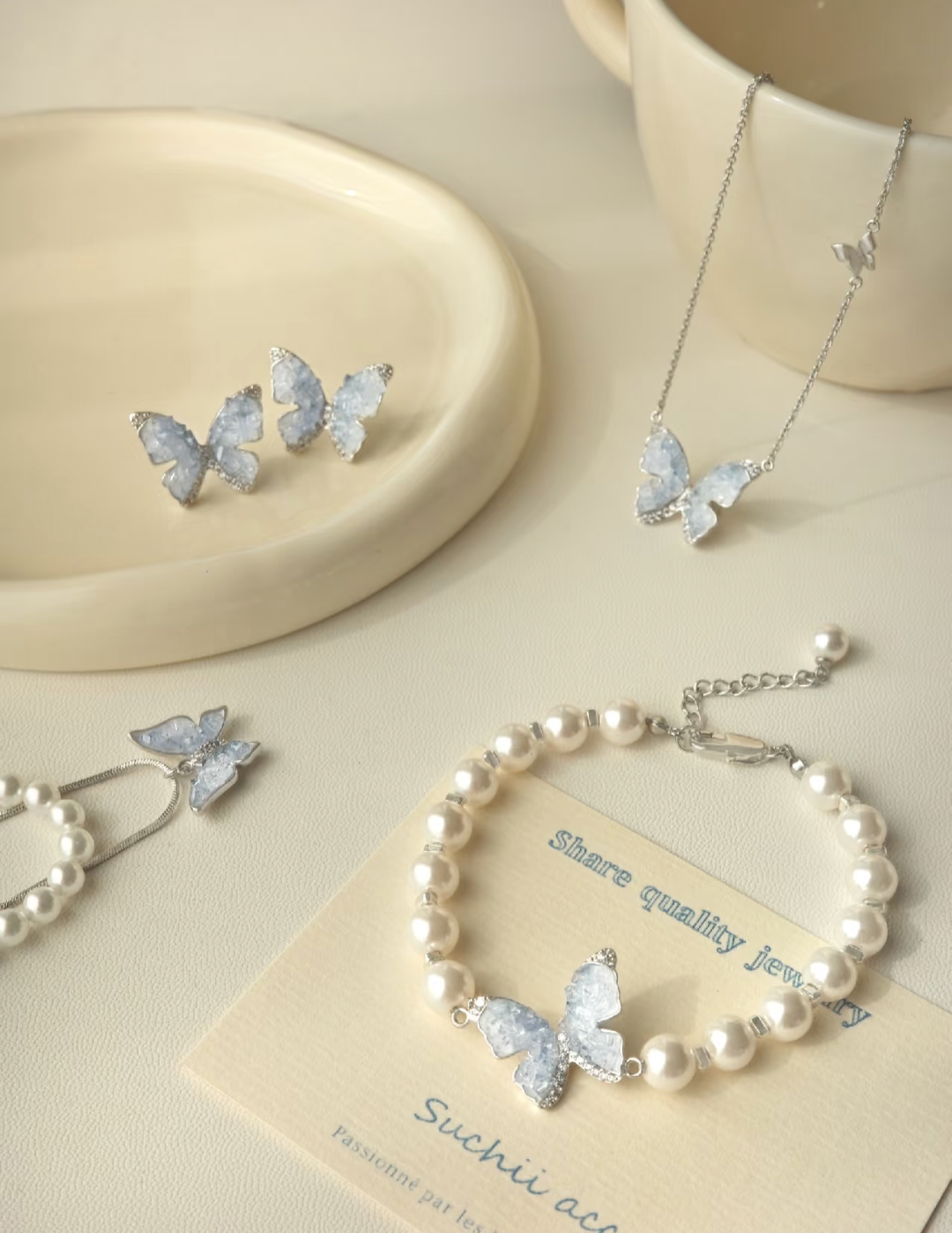 夏日冰川蓝~自带能量的许愿蝴蝶首饰轻奢小众项链高级感气质