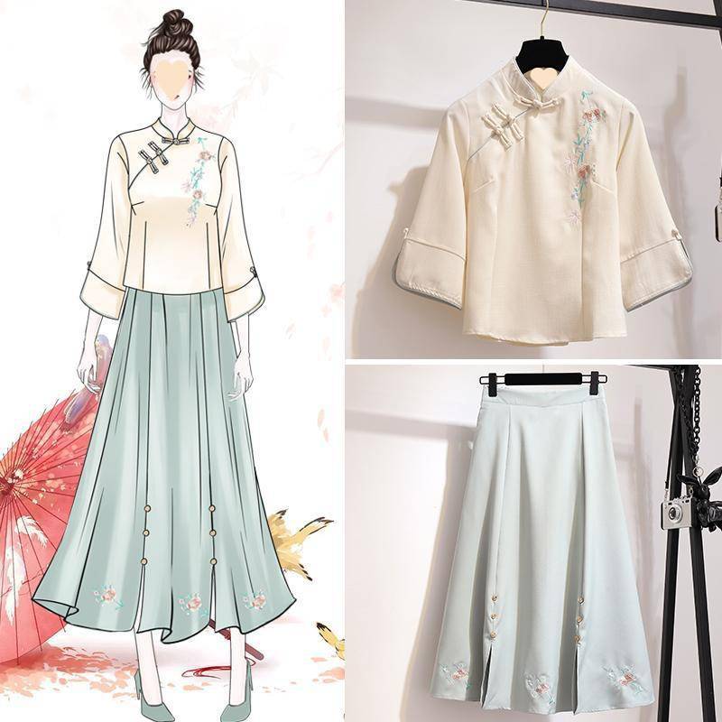 国风套装民国风女装复古学生装春秋改良装风汉服女唐装旗袍两件套