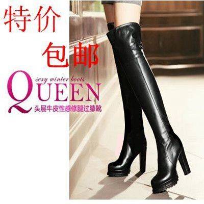 特价秋冬新款长靴高跟粗跟马丁靴防水台厚底真皮 瘦腿过膝靴 女士 499.00 已售:1件
