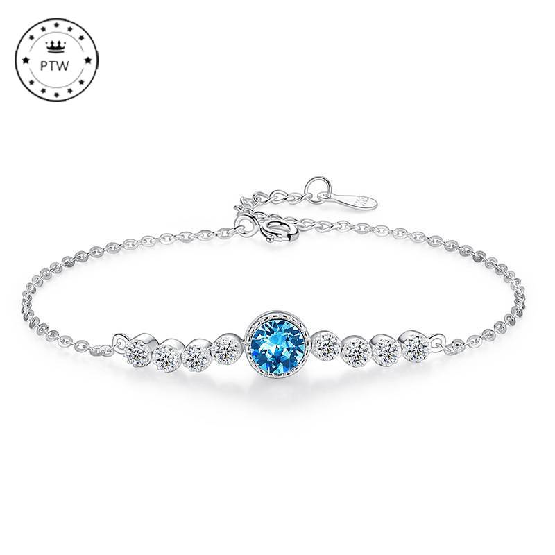 海洋之心S925纯银手链女时尚百搭 水晶手镯学生闺蜜首饰