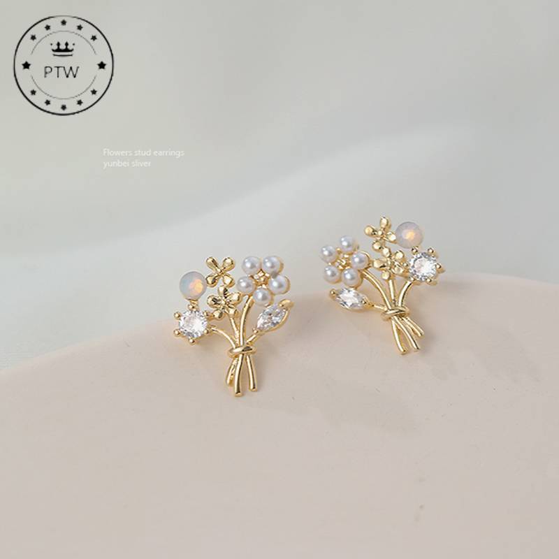 银针手捧花耳钉女法式精致高级感轻奢气质清新夏耳饰耳环夏季 款