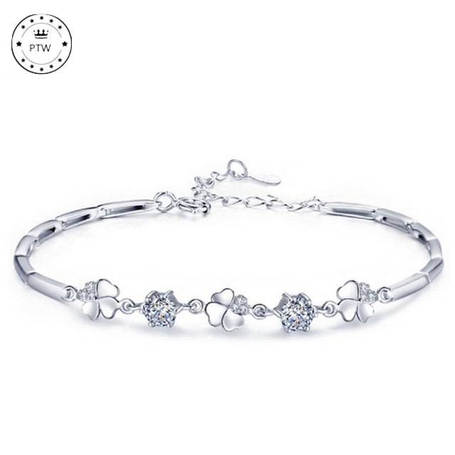 镀925银手链女 镶钻首饰四叶草旋转爱镀银手链