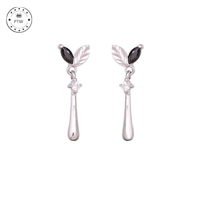小Z优品925纯银精致清新可爱叶子锆石迷你小耳钉耳坠耳饰学生礼物