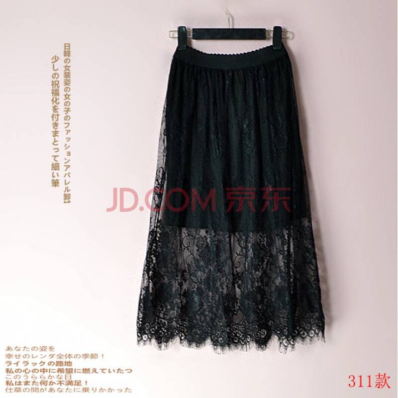 韩版高腰网纱半身裙女2020新款 纯色两面穿蕾丝百褶裙飘逸大摆裙