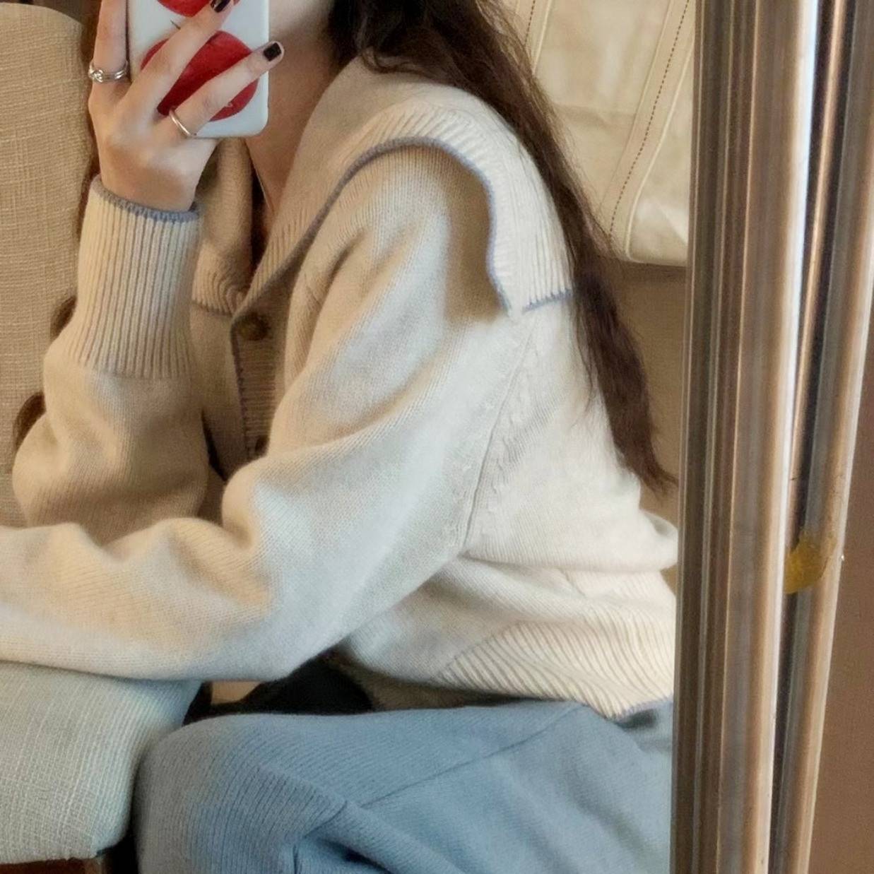 2022新款加厚羊毛衫女海军领毛衣开衫纽扣针织宽松打底上衣外套