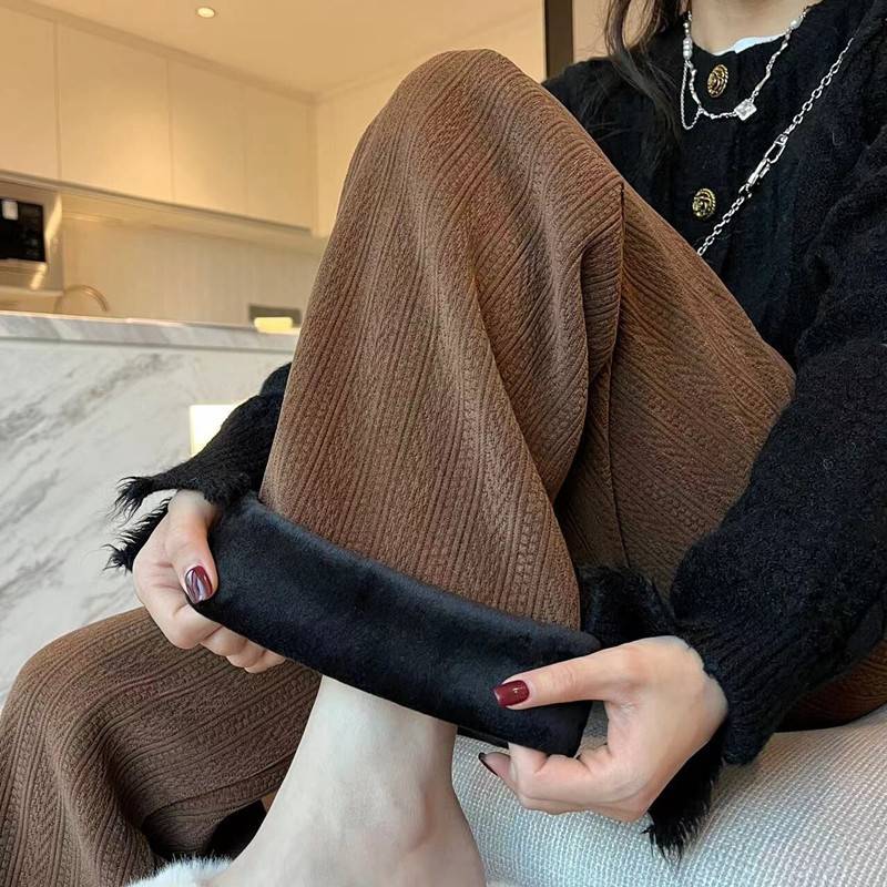 麦穗纹雪尼尔阔腿裤女秋冬2022年新款高腰垂感白色直筒休闲裤子