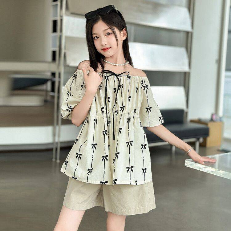 女童娃娃衫短裤套装夏季2024新款时尚中大童洋气泡泡袖夏装短袖潮 40.00 已售:0件