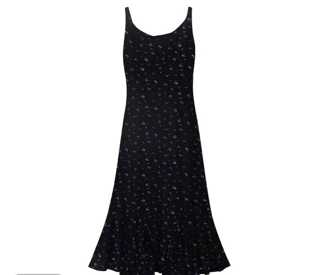 0076法式温柔风碎花时尚气质黑色收腰印花连衣裙修身荷叶边鱼尾裙