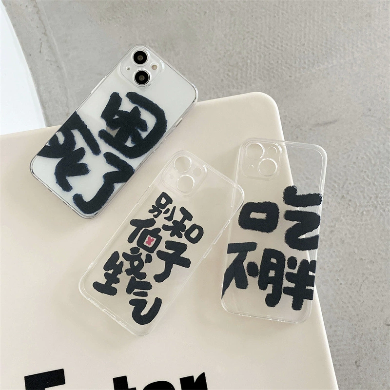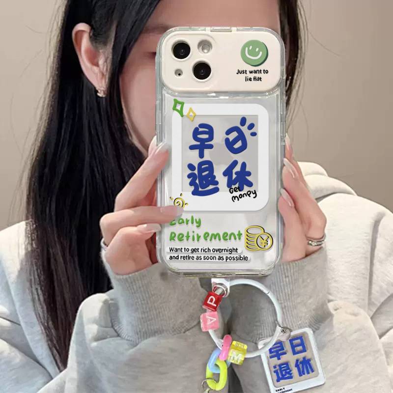 适用苹果13化妆镜支架手机壳iP14搞钱要紧软壳11文字12早日退休7P