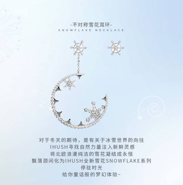 浪漫不对称雪花圆耳环女优雅耳钉耳饰告白礼物网红