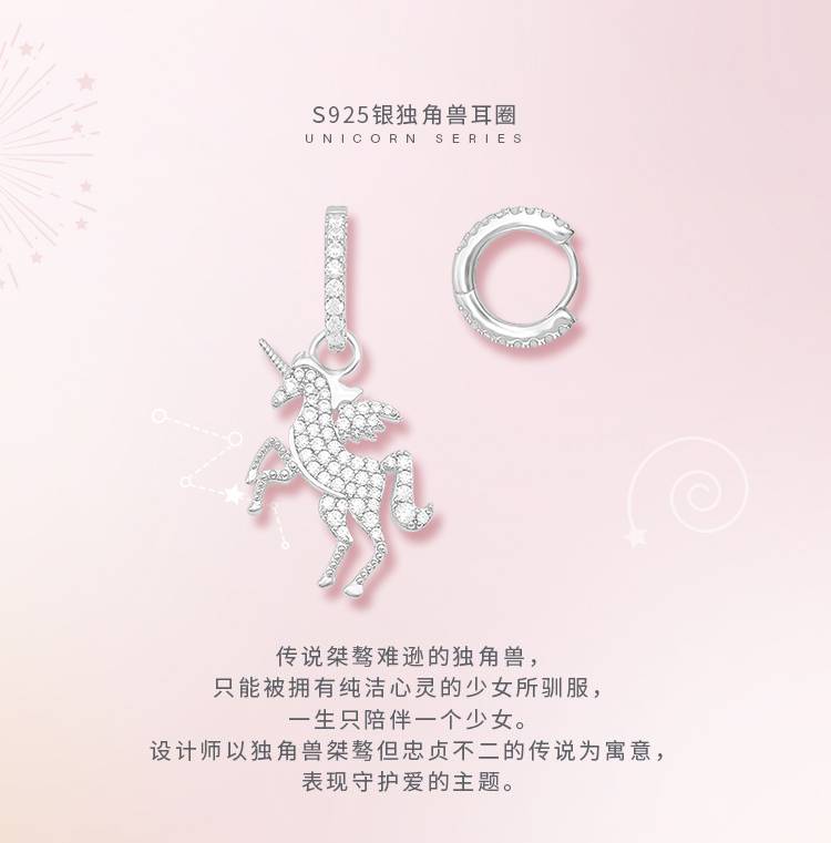 s925银独角兽AB不对称耳环耳饰耳圈送女友原创设计