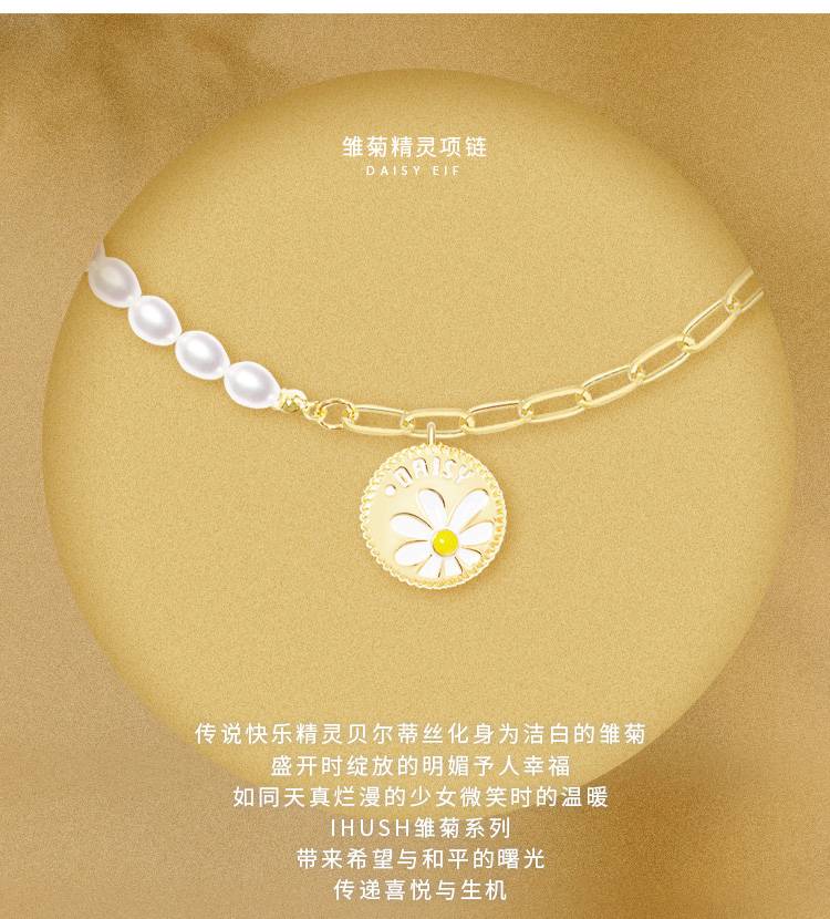 小雏菊项链锁骨链女巴洛克淡水珍珠告白礼物轻奢ins