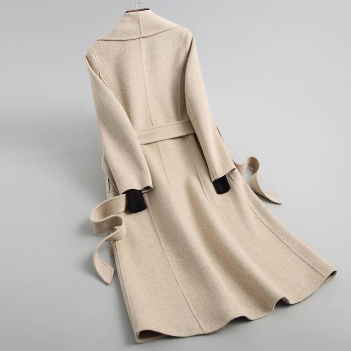 新款毛呢外套女装中长款小个子双面呢羊毛绒大衣腰带显瘦