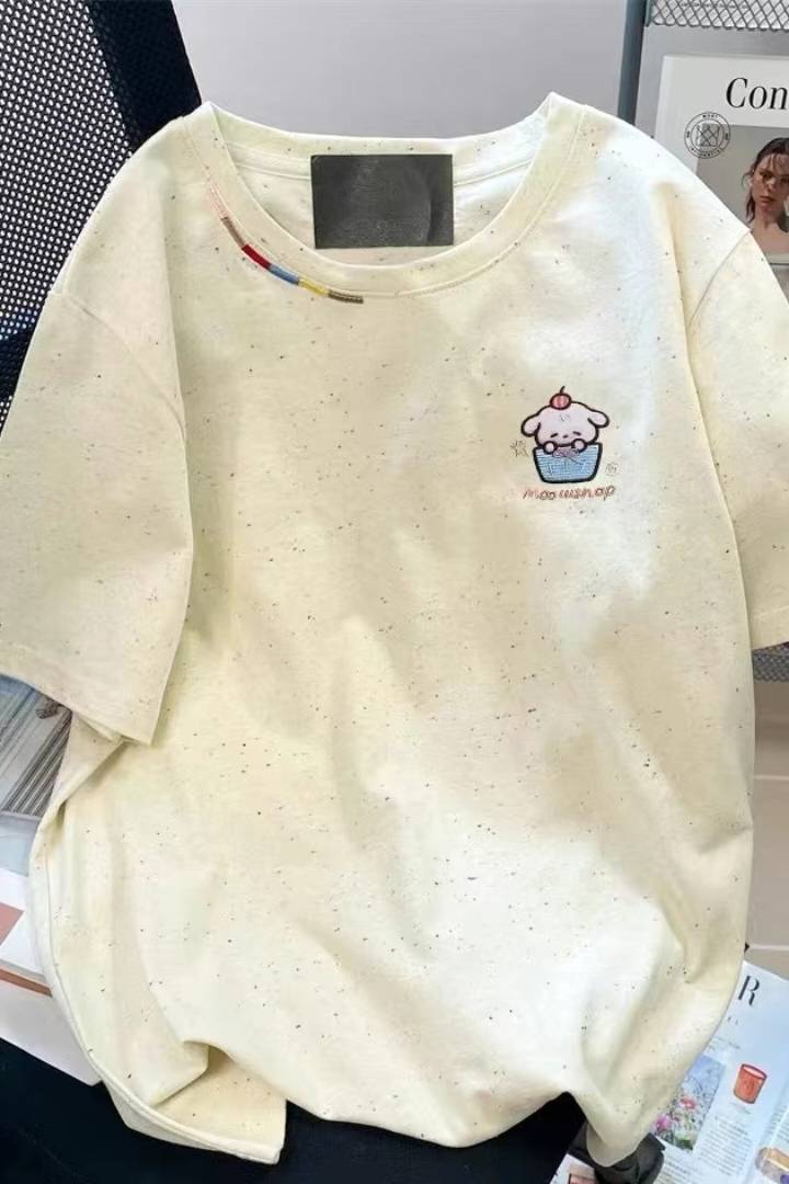 100%纯棉美式设计感趣味印花短袖女休闲t恤夏季ins潮宽松显瘦上衣