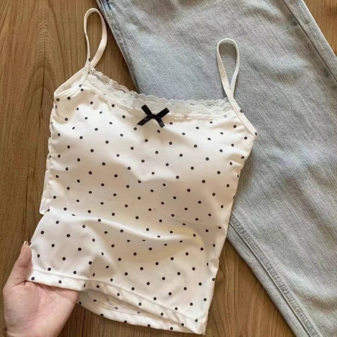带胸垫夏季蕾丝蝴蝶结纯欲吊带背心女内搭外穿甜辣设计感小众上衣