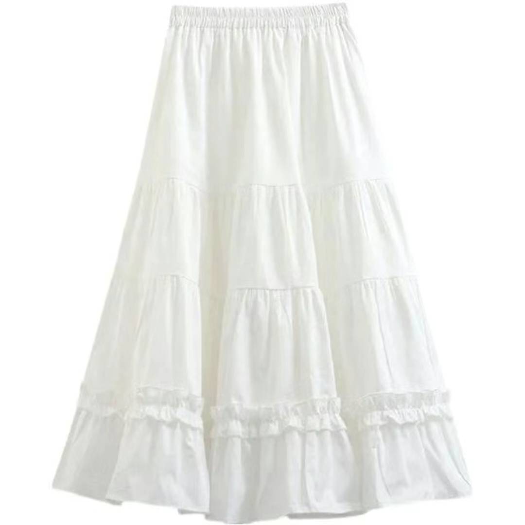 白色半裙A字裙中长款半身裙女蓬蓬裙可爱显瘦百褶伞裙蛋糕裙潮
