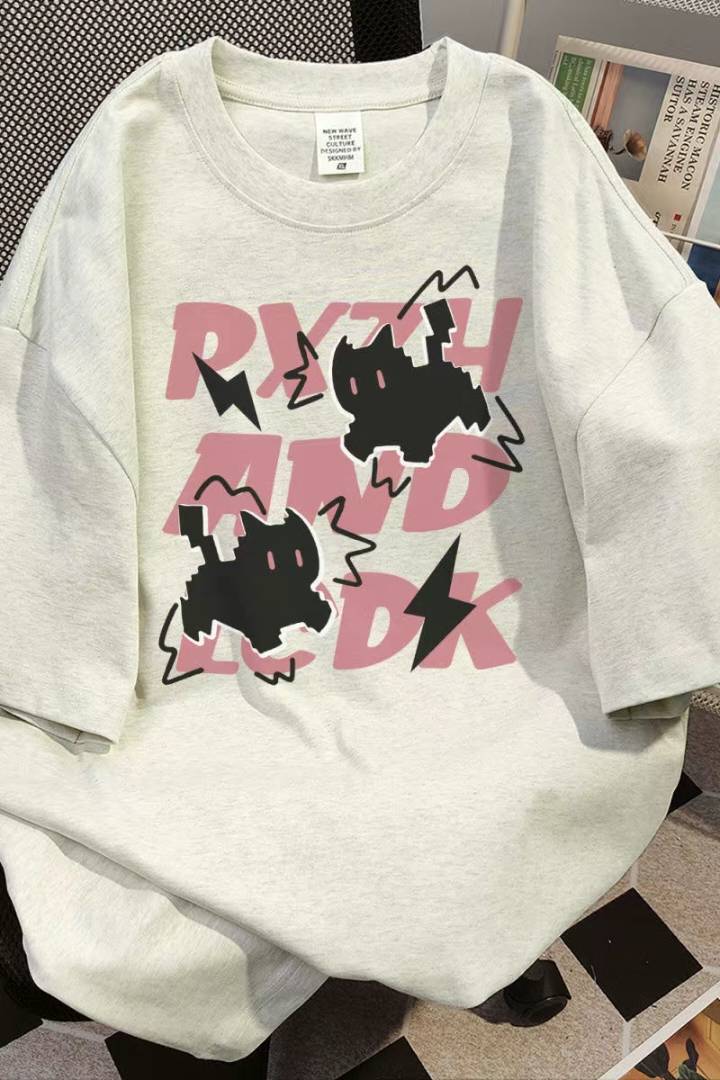 100%纯棉涂鸦字母印花短袖美式复古中长款t恤女夏季新款宽松上衣