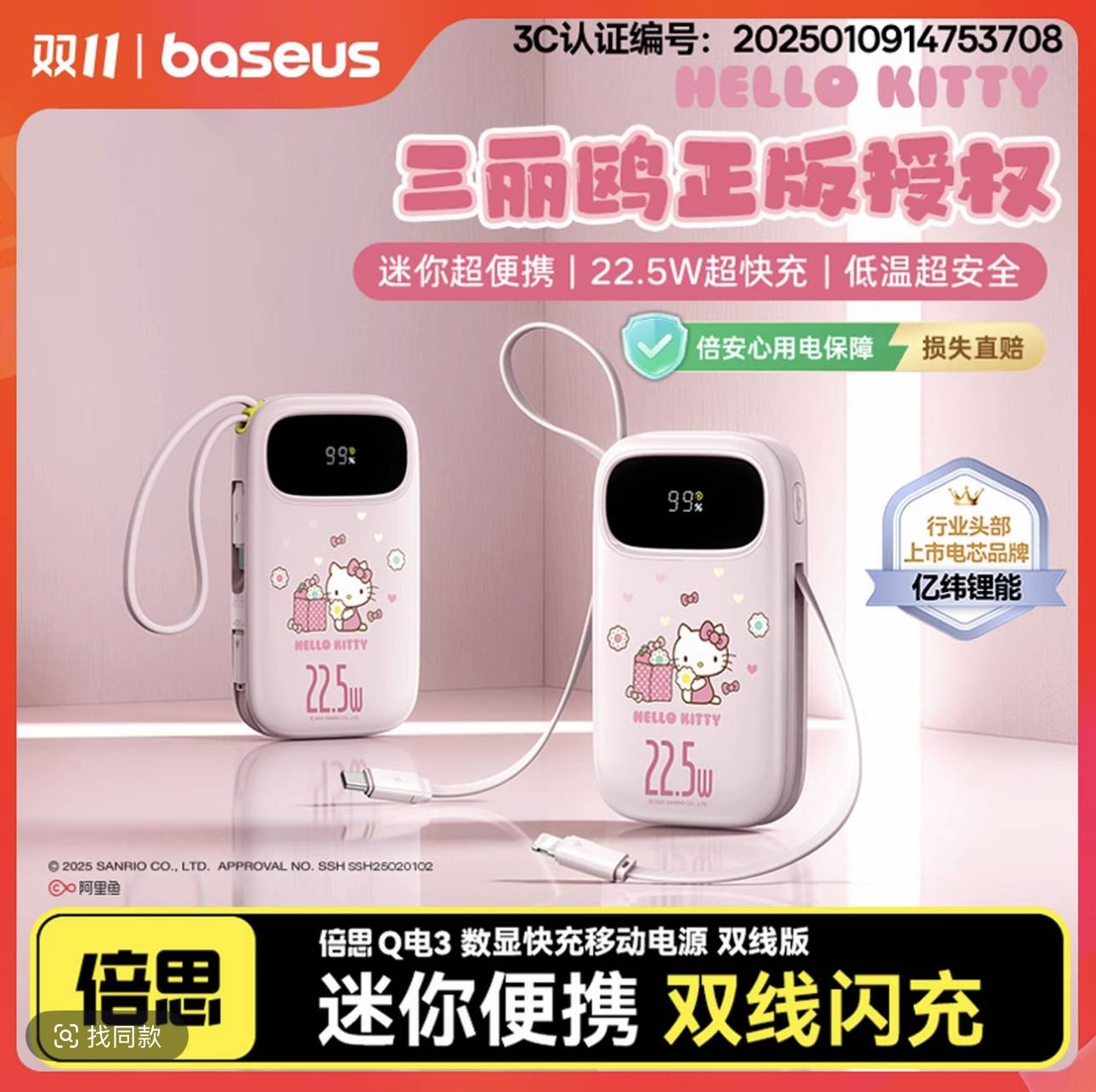 【3C认证-凯蒂猫限定版】倍思Q电3充电宝10000毫安大容量22.5W双线 129.00 已售:0件