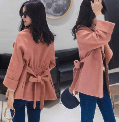 粉色斗篷外套女秋冬短款收腰原宿呢子大衣矮个子学生毛呢加厚宽松