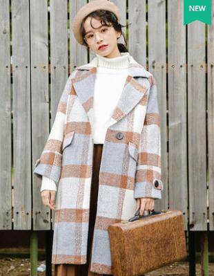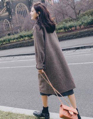 毛呢外套女中长款韩版2018秋冬季新款格子学生百搭呢子流行大衣