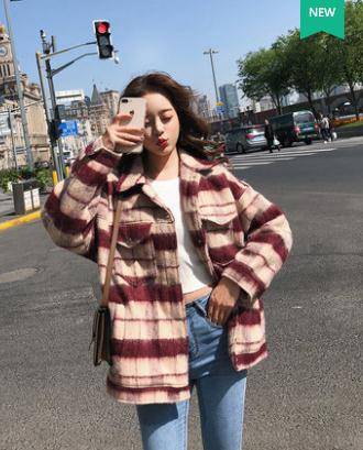 短款毛呢外套女秋冬2018韩版学生宽松格子长袖上衣时尚百搭呢子潮