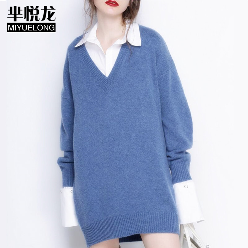 欧洲站新款山羊绒衫女中长款慵懒风毛衣宽松粗毛线针织打底衫