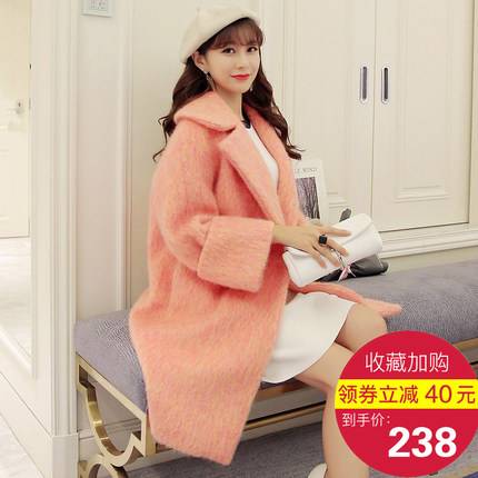 2018新韩版冬季加厚羊绒毛呢大衣宽松中长款赫本风茧型毛呢外套女