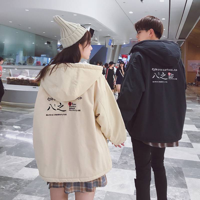 情侣秋冬装新款韩版羊羔毛连帽棉衣外套女冬季学生宽松棉服