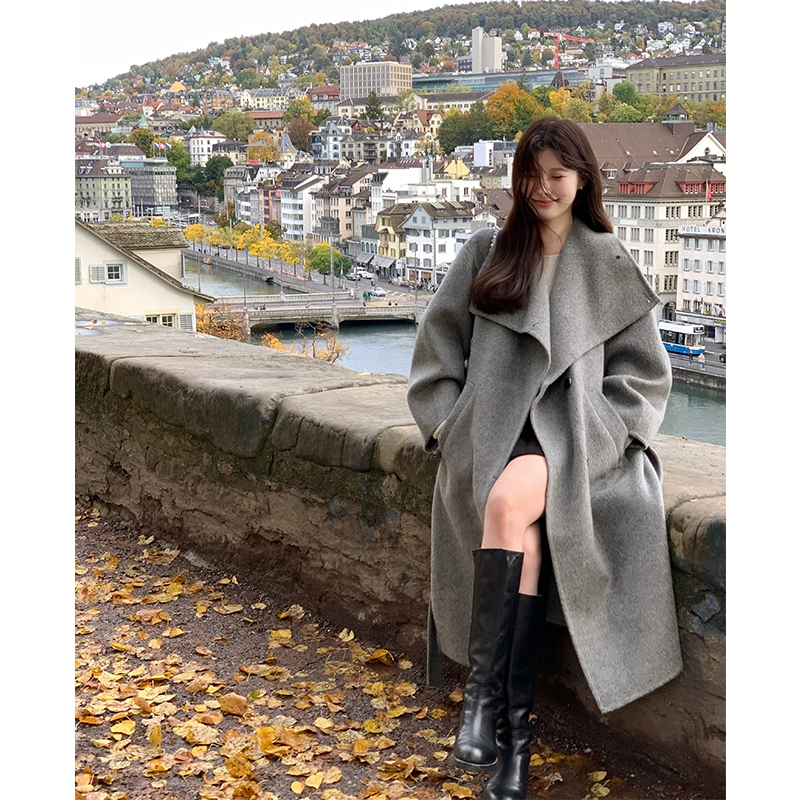 复古翻领羊驼毛双面呢大衣女秋冬高级感小个子长款呢子外套