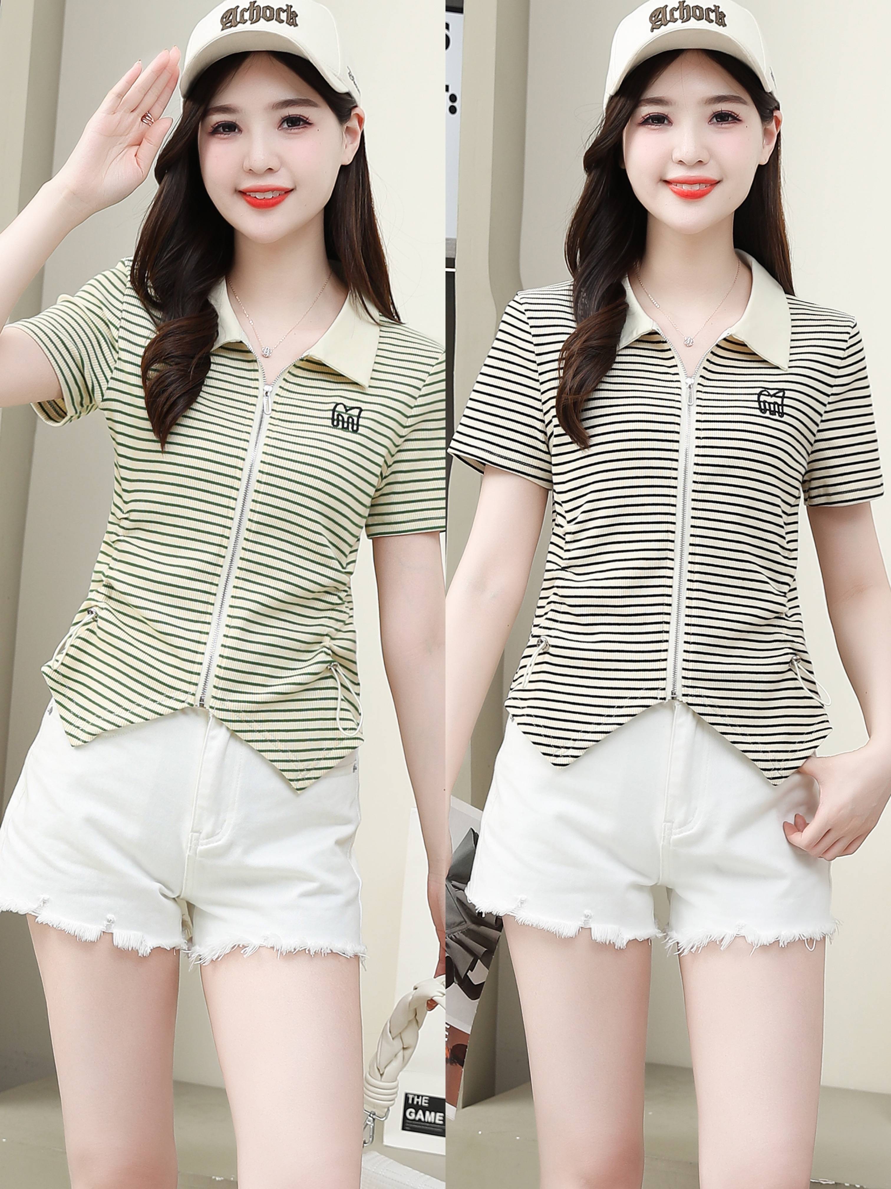 2024爆款纯棉女t反领休闲半袖女上衣