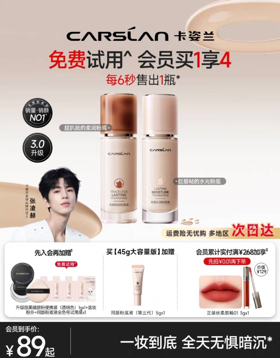 3.0升级款/卡姿兰粉底液遮瑕持久不脱妆小夜猫奶猫混猫粉底液干皮