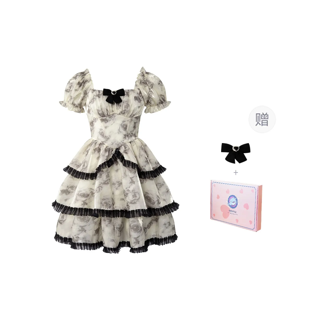 法式复古泡泡袖碎花裙开学季优雅气质毕业季穿搭游修身收腰短袖连衣裙 春夏季 女款 大理石玫瑰