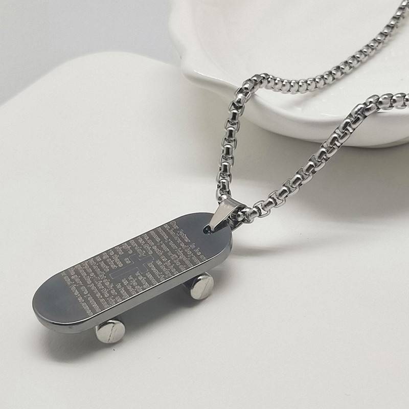 潮流滑板鞋带轮项链 十字架吊坠 男生小众学生情侣挂件嘻哈 饰品