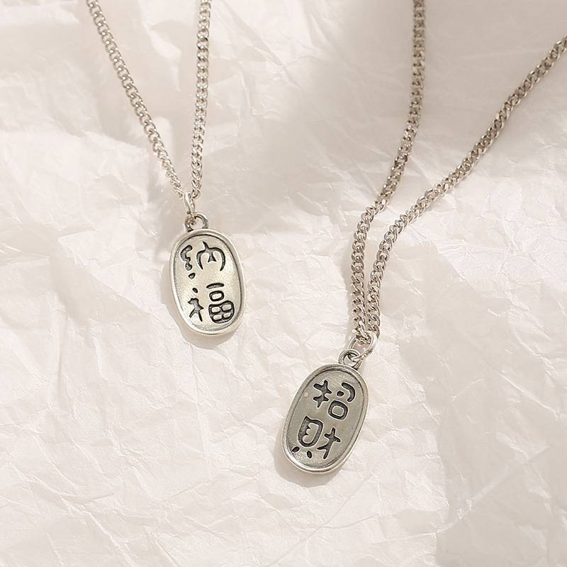 新款原创招财纳福情侣项链男女一对小众简约气质潮小众锁骨链包邮