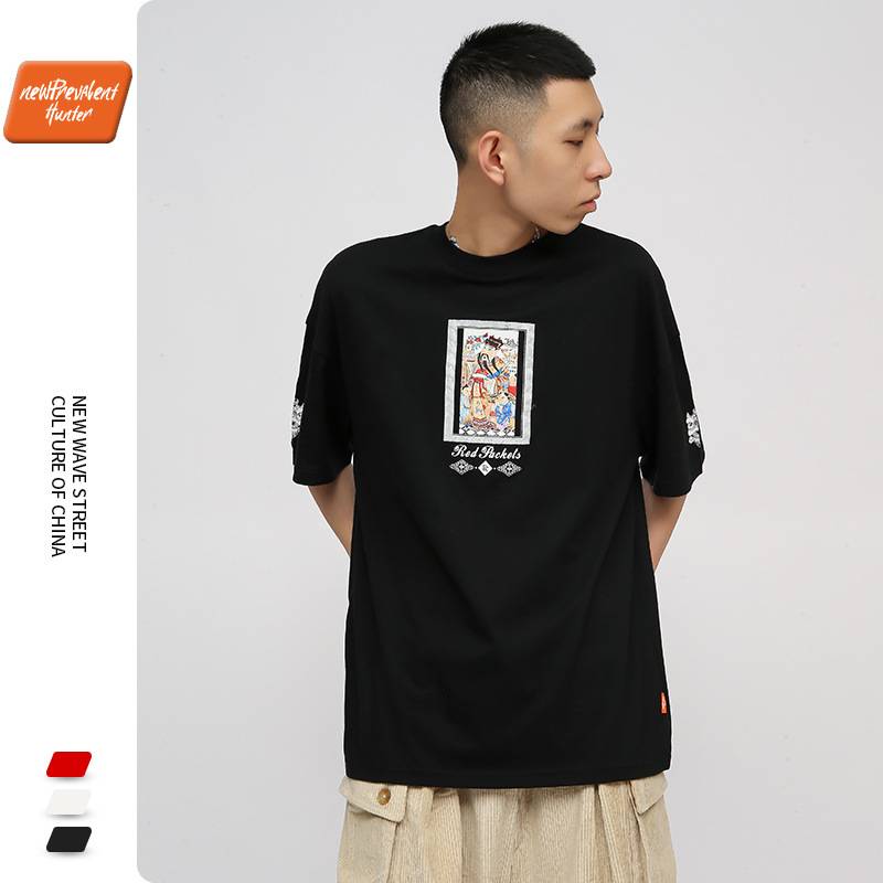NPH2021春夏新款中国风短袖t恤男财神爷印花国潮宽松嘻哈情侣半袖