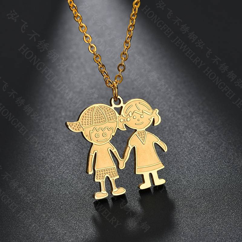 21新款小众跨境配饰不锈钢男孩女孩家庭系列项链卡通动漫吊坠包邮