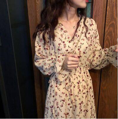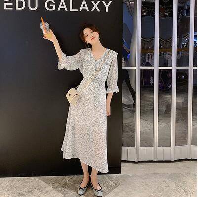 2019新款 乌77 V领蝴蝶袖高腰连衣裙