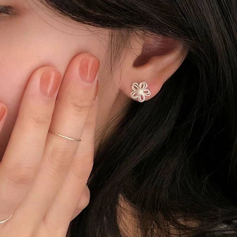 925纯银不规则镂空花朵耳钉女韩版简约小众设计甜美气质耳饰 31.60 已售:0件