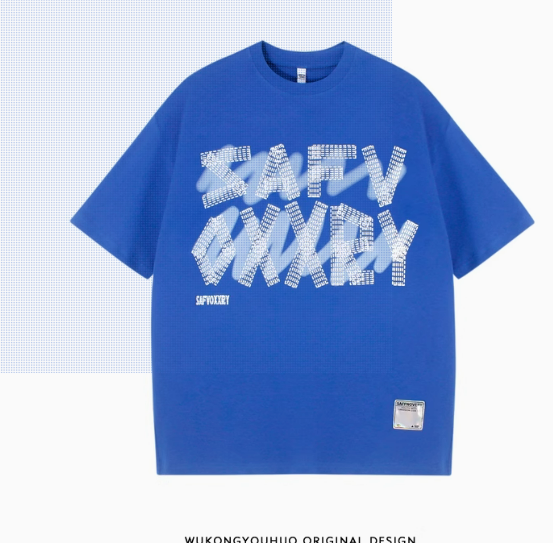 悟空有货潮牌设计感字母印花圆领短袖T恤男嘻哈oversize百搭体恤