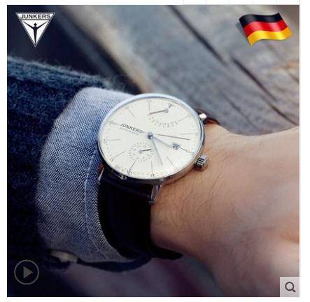 JUNKERS荣克士德国手表男 牛皮腕表正品防水薄男士自动机械表潮流