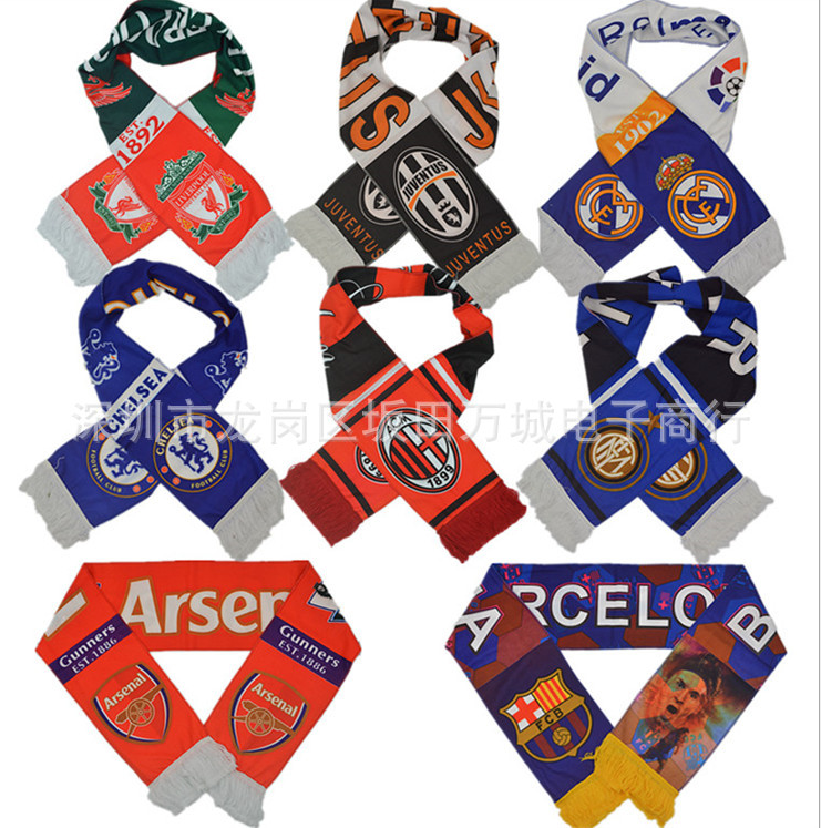 足球周边礼品AC米兰尤文巴萨皇马利物浦阿森纳切尔西围巾围脖绒棉两件包邮 20.00 已售:1件