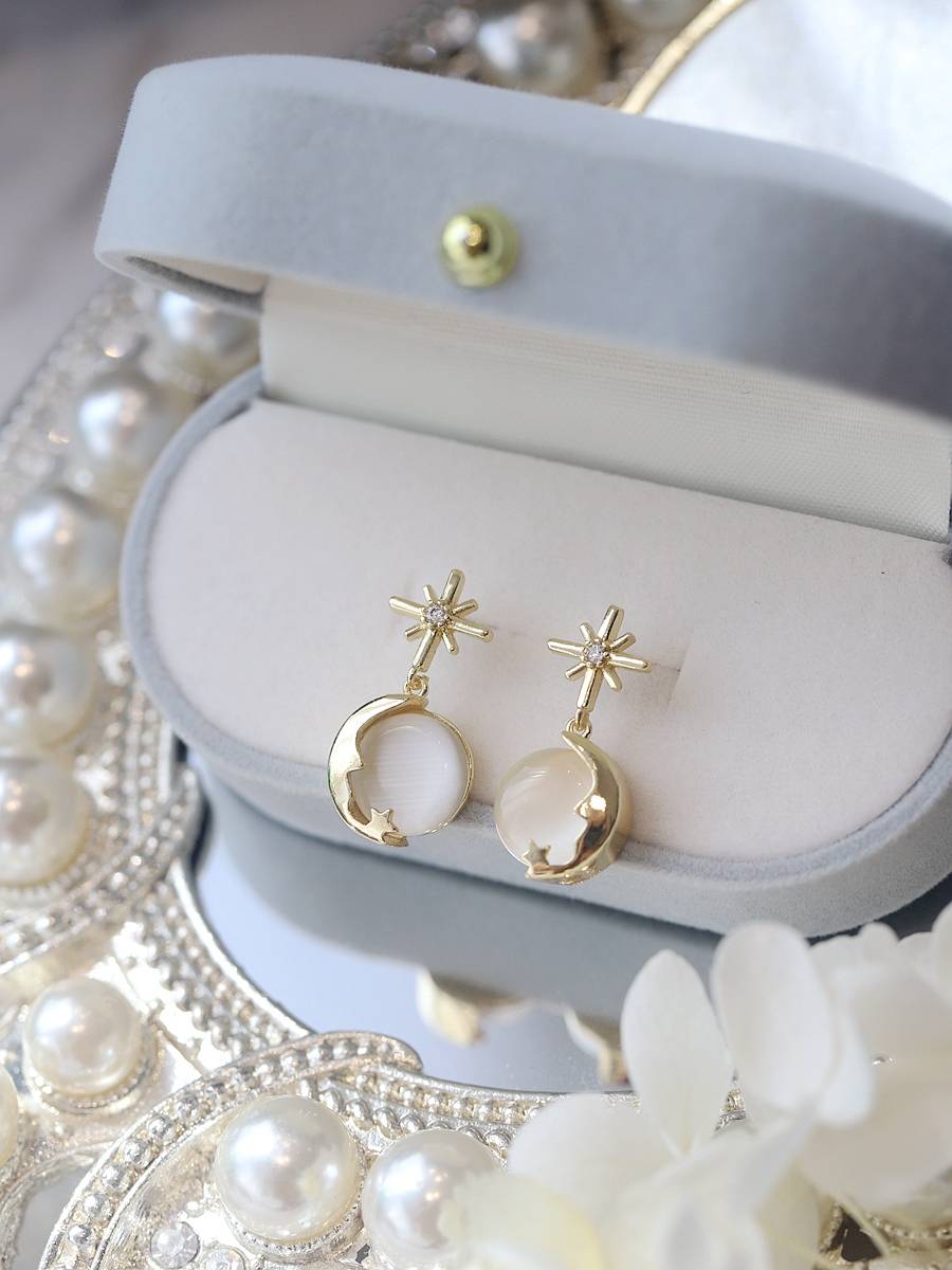 猫眼石耳钉气质新款潮流百搭八芒星耳坠