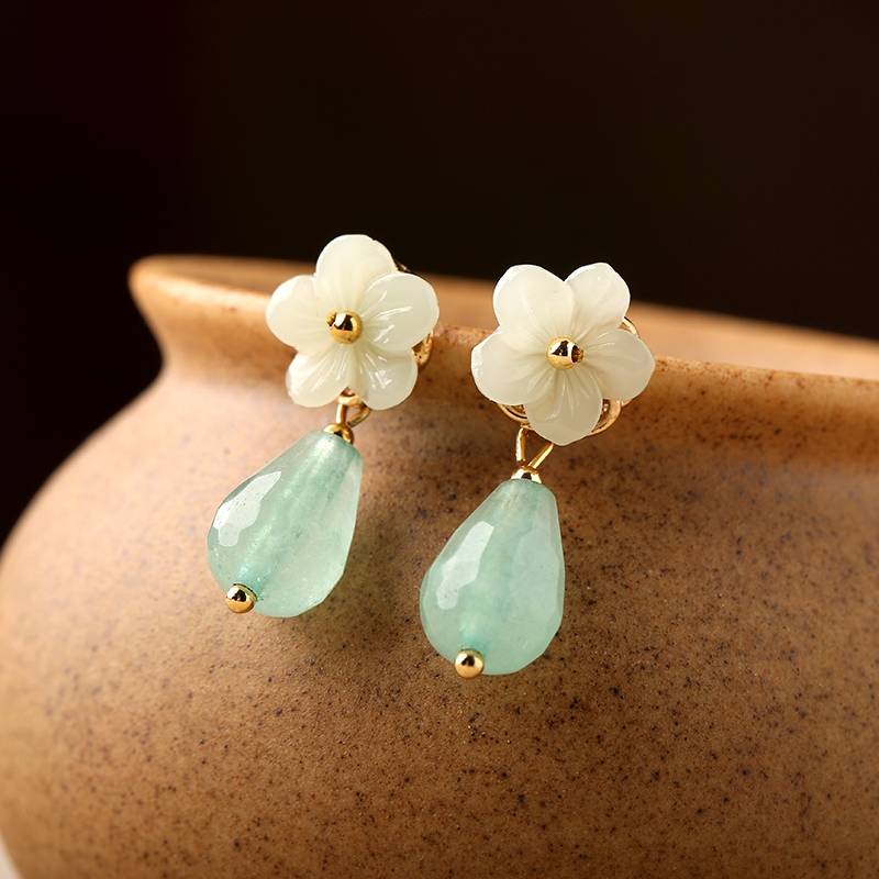 925银针轻奢耳钉女蕾丝高级感复古祖母绿水滴宝石小众气质耳环女