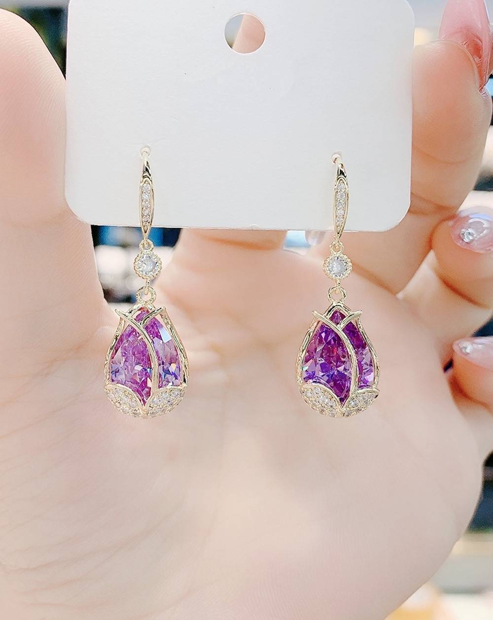 郁金香猫眼石耳环女纯银针2021新款潮大气气质小众设计感高级耳钩